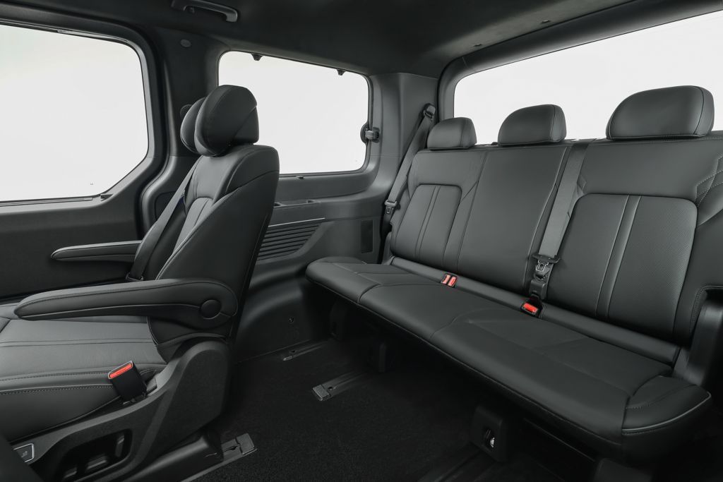 9-miejscowa konfiguracja z Captain Seats w drugim rzędzie obracającymi się do tyłu tworzy strefę VIP dla pasażerów. Elektryczne drzwi przesuwne z funkcją Hamsan otwierają się bezdotykowo po zbliżeniu ręki do klamki. Dual Wireless Charging dla dwóch smartfonów i gniazdo 220V w drugim rzędzie podnoszą komfort. Holowanie do 2000 kg z hamulcem czyni van idealnym do przewozu przyczep kempingowych czy sprzętu sportowego.